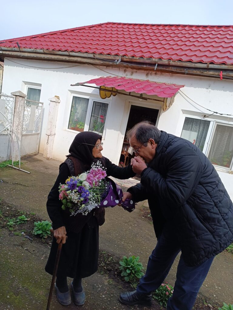De ziua ei, Alexandrina Lazăr a primit în dar de la edil torul aniversar, flori și un cadou financiar.